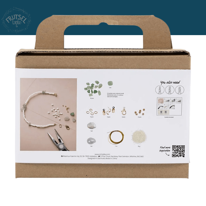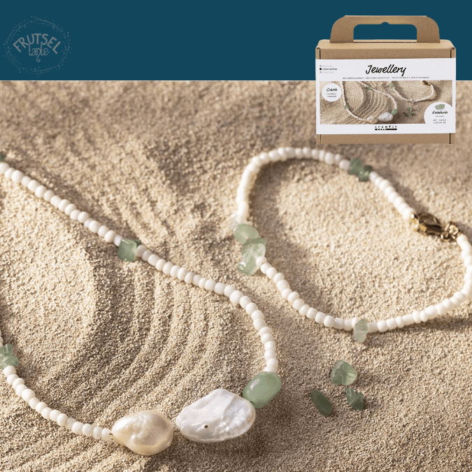 Met deze DIY sieradenset met echte Aventurijn, zoetwaterparels en mooie bijpassende materialen kan je zelf een armband en ketting maken. De Aventurijnkristallen zijn uniek en natuurlijk en vari?ren daarom in grootte, vorm en kleur. Aventurijn staat voor vreugde, levenslust en energie. Het brengt geluk en stimuleert om meer te laten zien en horen wat je zelf echt wilt. Bij de set zit een uitleg hoe je de sieraden kan maken. Er is ook een QR code op de verpakking om de uitleg digitaal te krijgen.