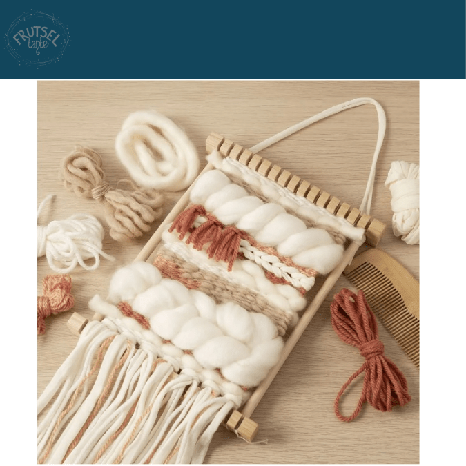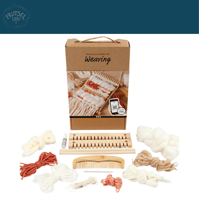 Leer weven met deze mooie set. In de doos vindt je een weefraam (om zelf in elkaar te zetten), lijm, 6 mtr scheringdraad, een kam, een garennaald en garen in mooie warme kleuren. Dit garen heeft verschillende diktes en is in totaal 30 mtr. Het pakket bevat een handige instructie, maar ook een QR code met een link naar de instructievideo. Als je je weefwerkstuk op een stok of een bord ophangt, kan je het weefraam meerdere malen gebruiken.