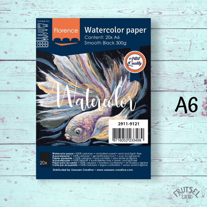 A6 zwart Florence aquarelpapier glad 300 gram 20 vel