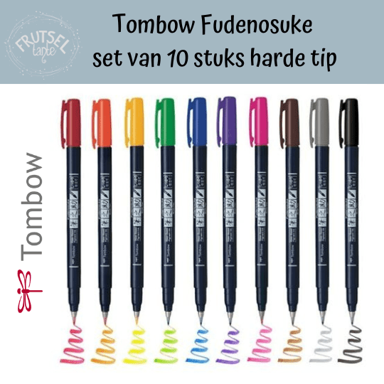 Deze set met pennen met een kleine harde brushpunt van 3 mm is perfect voor kalligrafie en handletteren, met name om heel nauwkeurig mee te werken. De inkt geurt niet en is op waterbasis, maar droogt watervast op. Hierdoor kun je hem goed gebruiken met aquarelverf, de Tombow ABT-pennen of de Ecolinebrushpennen. De set bevat de volgende kleuren: geel, groen, blauw, paars, roze, rood, oranje, bruin, zwart en grijs.