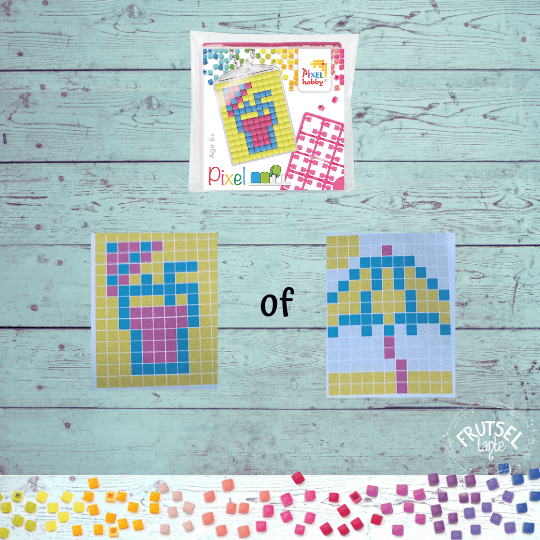Maak ook deze leuke sleutelhanger set. Deze pixelhobby set bestaat uit 1 doorzichtig medaillon (3 x 4 cm), 1 kettinkje, 3 gekleurde pixelmatjes met pixels van 2 x 2 mm en een patroon.