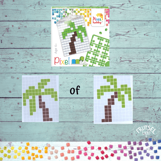Maak ook deze leuke sleutelhanger set. Deze pixelhobby set bestaat uit 1 doorzichtig medaillon (3 x 4 cm), 1 kettinkje, 3 gekleurde pixelmatjes met pixels van 2 x 2 mm en een patroon.