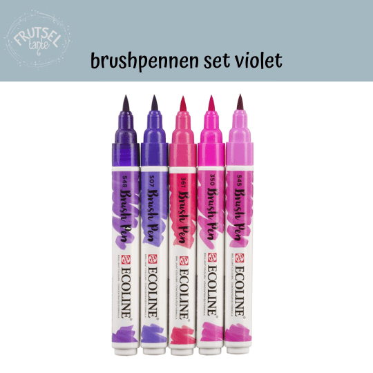 Deze set Ecoline brushpennen heeft een penseelpunt en geeft veel inkt af in levendige kleuren. De ecoline is op waterbasis en je kunt de inkt verdunnen met water. Met een penseel kun je aquareleffecten cre?ren. De pennen zijn navulbaar en dus duurzaam. Gebruik deze pennen voor illustraties, aquareltekeningen en handlettering. Inhoud: 5 Brush Pens (350 Fuchsia – 507 Ultramarijnviolet – 545 Roodviolet – 361 Lichtroze – 548 Blauwviolet).